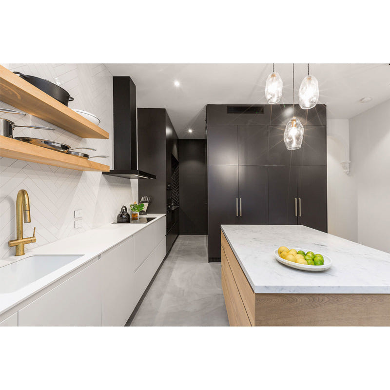 - Black steel with black tempered glass fascia