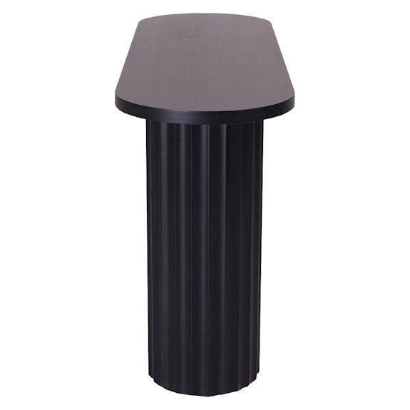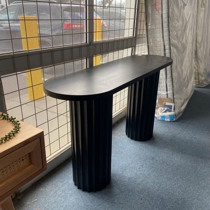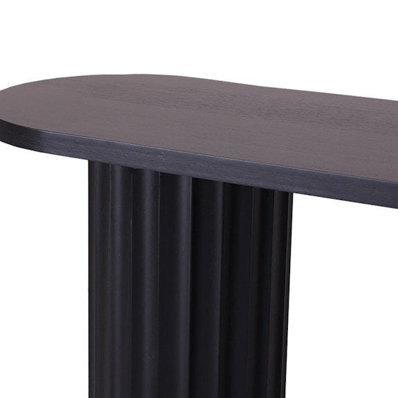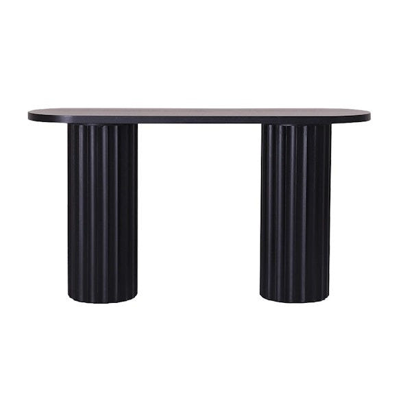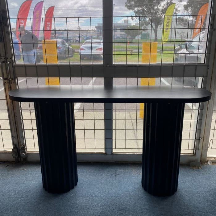 Within the Caesar furniture collection lies this stunning standalone occasional piece ready to bring both style and functionality to your home. This contemporary design makes a bold statement with its bold black finish crafted from Messmate timber veneer. With its graceful curves, the Caesar hall table boasts a captivating appearance destined to become a focal point against any blank wall. Its rounded corners and column-like pedestal legs offer both stability and design appeal. Further enhancing its modern aesthetic is the fashionable scallop profile adorning the base. Discover today why the Caesar furniture collection is currently in high demand, and learn how you too can transform any space with this stunning new range!