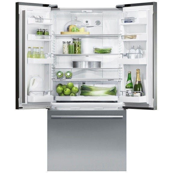 This Fisher & Paykel french door fridge offers simple storage and a large 519L capacity - perfect for the family household. Featuring a modern, flat door design and stainless steel finish. The French door design also allows you to conserve kitchen space. Humidity controls in the easy access crisper draws offer a range of settings for both fruit and vegetables to keep them fresher for longer. The spill safe edge to catch accidental spills and the removable shelves make cleaning that much easier.