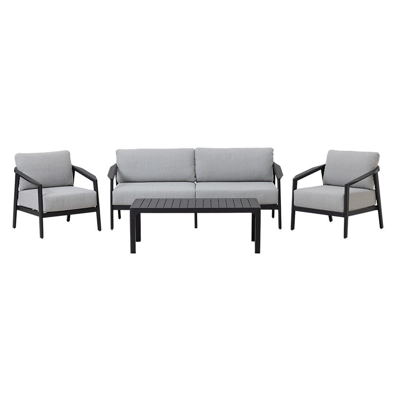 Isla 4 Piece Outdoor Lounge Setting - Light Grey/Black
