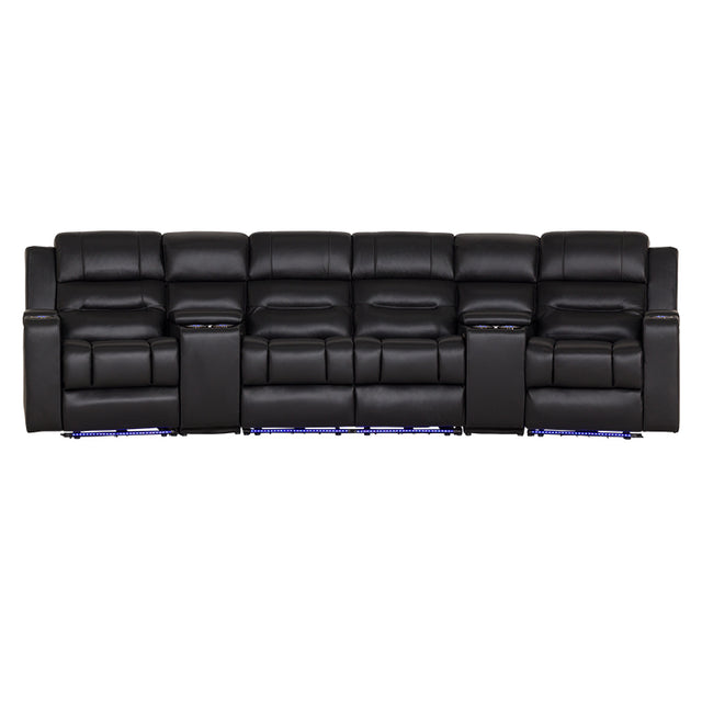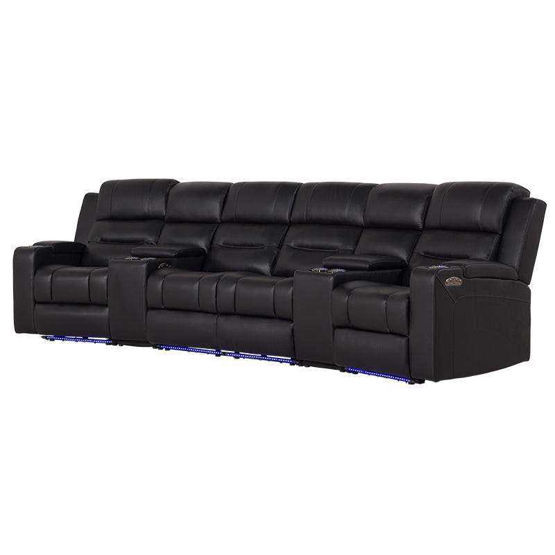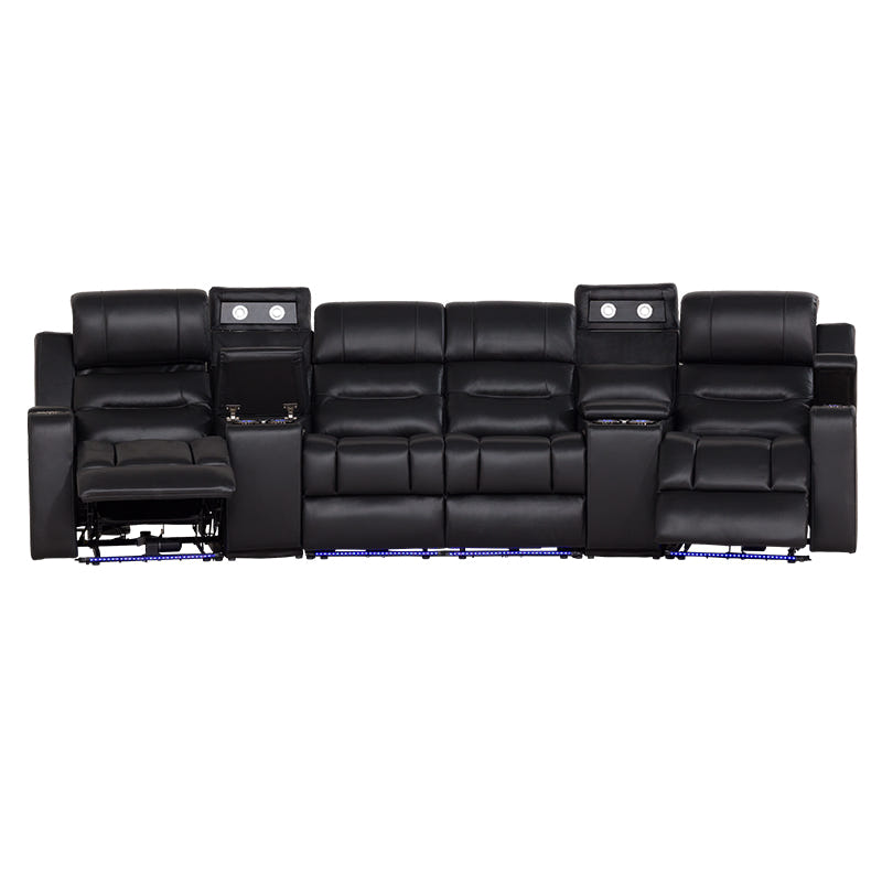 Spielberg 4 Seater Home Theatre Electric Recliner Leather Lounge - Black