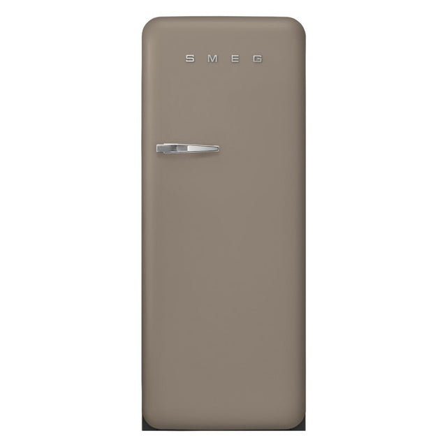 Elevate your kitchen ambiance with the Smeg 50's Style Retro Refrigerator in the serene hue of Taupe, a testament to refined design and exceptional functionality. This refrigerator seamlessly combines retro-inspired aesthetics with modern innovations to meet the needs of contemporary living. Featuring electronic temperature control and a Life Plus 0°C drawer, it ensures precise storage conditions for your groceries, preserving their freshness and nutritional value. The MultiFlow cooling system guarantees consistent temperatures on every shelf, while the rapid cooling function rapidly chills your beverages and perishables. Equipped with a built-in humidity regulator, it extends the shelf life of fruits and vegetables, maintaining their crispness and flavor. The natural, relaxing earthy tone of Taupe adds a touch of sophistication and warmth to your kitchen decor, creating an inviting space where style meets functionality.