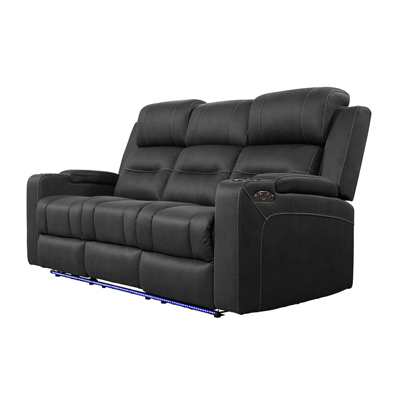Spielberg 3 Seater Electric Fabric Recliner Sofa with Entertainment Console - Jet