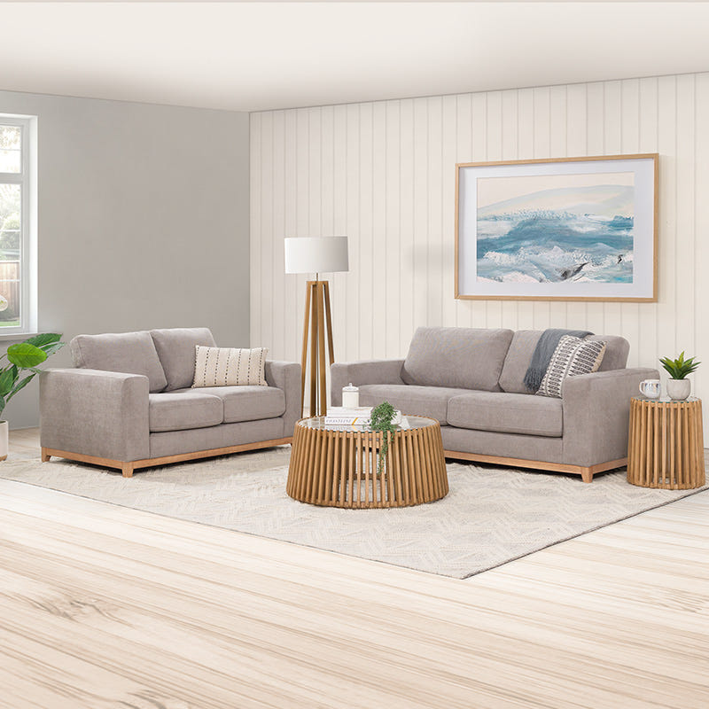 Are you looking for a stylish sofa for everyday living, that also creates a statement when you enter the room? Come home to the new Willow fabric sofa, that will breathe new life into the heart of the home, as it beckons you to sit and stay for a while. This 2-seater sofa is just one of the many options available in the range that conveys a comfortable and welcoming narrative. The soft grey canvas provides a subtle backdrop for adding cushions and throws to help bring to life your vision and styling genre. The frame is slightly elevated off the ground by a light oak plinth that wraps around the base of the sofa. This creates a stylish contrast against the upholstered fabric finish which together embraces a modern classic aesthetic with subtle coastal references. The timber also enhances its undeniable good looks that delivers a perfectly proportioned sofa offering a comfortable and supportive seating experience using premium foams and fabrics. We recommend you protect your new Willow sofa with a Guardsman 5 Year Fabric Product Protection Warranty. This ensures your sofa is covered for things like accidental stains and mishaps, so your sofa stays looking its best for longer!
