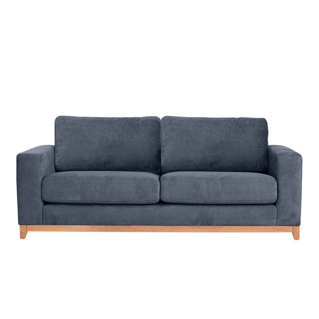 Introducing the Willow 3.5 Seater Fabric Sofa in Azure, a beautifully designed centerpiece that combines functional comfort with a splash of color. This sofa features classic square profile armrests and an eye-catching contrast of timber plinth and feet, enhancing its modern appeal. The upholstery in Enjoy - Azure provides a vibrant yet soothing atmosphere to any living area, making it a standout piece. Constructed with a robust spring and webbing seat system, the sofa supports and adapts to your body, ensuring comfort that lasts throughout the day. The loose back cushions offer flexibility and ease of adjustment, while the fiber and foam-filled seat cushions deliver an inviting plushness. Dimensions of 2090W x 1000D mm make this 3.5 seater an excellent choice for larger spaces, offering ample room for family and guests without compromising on style. Backed by a 5-year structural warranty and a 2-year warranty on foam and fabric, this sofa assures quality and durability. Part of a versatile range, it coordinates effortlessly with other pieces, allowing you to create a cohesive and inviting interior space.