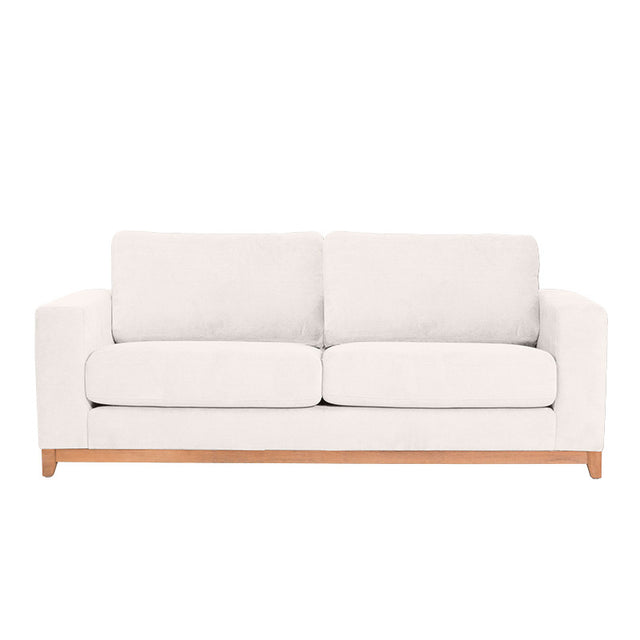 Elevate your living room with the timeless elegance of the Willow 3.5 Seater Fabric Sofa in Ivory. This exquisite piece features stylish square profile armrests paired with contrasting timber plinth and feet, embodying a blend of traditional charm and modern flair. The sofa is upholstered in a luxurious Enjoy - Ivory fabric, offering a neutral yet sophisticated palette that integrates seamlessly into any decor style, from minimalist to eclectic. Built for durability and comfort, it includes a spring and webbing seat construction that ensures long-lasting support and a comfortable sit, even during extended use. The loose back cushions provide adjustable support and easy maintenance, while the seats filled with a combination of fiber and foam create an inviting softness. With dimensions of 2090W x 1000D mm, this large sofa offers plentiful seating without overwhelming the space, making it ideal for family gatherings or quiet evenings at home. It comes with a comprehensive 5-year structural warranty and a 2-year warranty on the foam and fabric, ensuring both quality and peace of mind. Part of a coordinated range, this sofa can be paired with matching pieces for a cohesive look.