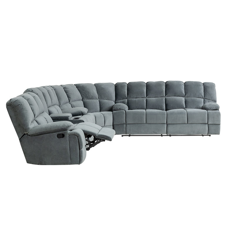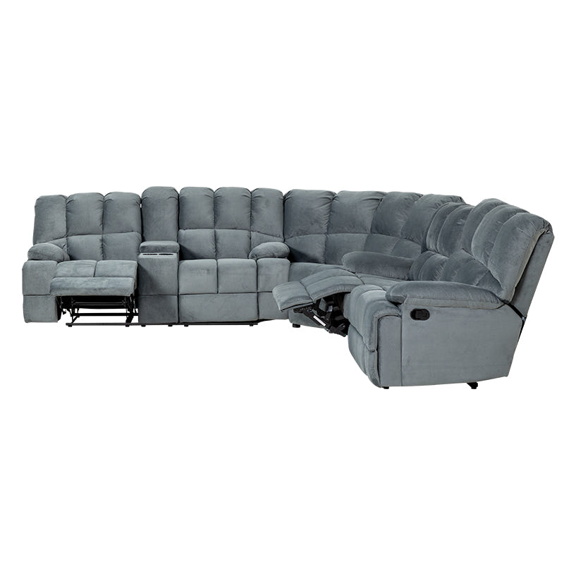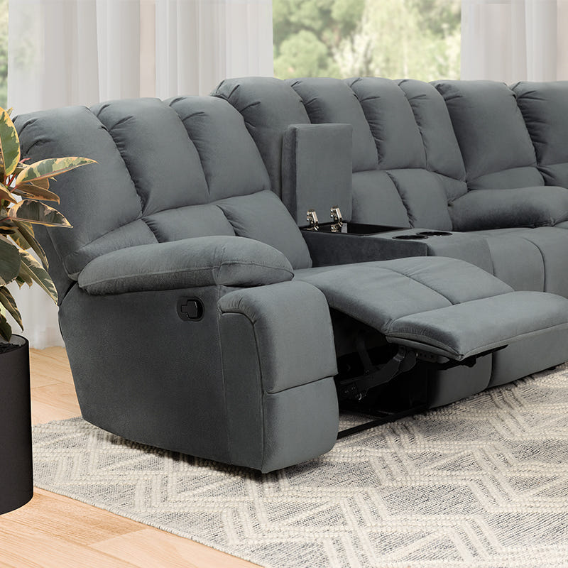 Augustus 5 Seater Corner Fabric Recliner Lounge - Dark Grey