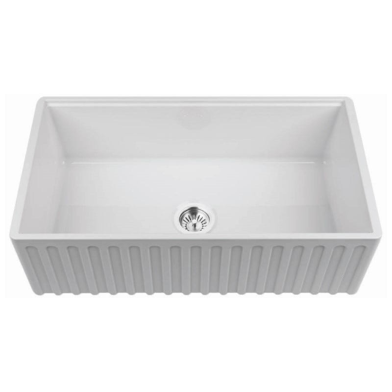 The Chambord Louis Legrande Reversible Sink is a statement piece that blends French Provincial charm with superior craftsmanship. Manufactured in Europe from premium fireclay, this sink is built to last, featuring a stain-resistant, easy-to-clean surface that maintains its beauty even with daily use. It is insensitive to temperature changes, ensuring durability against hot cookware and cold rinses. What makes this sink truly special is its reversible design, allowing you to choose between a sleek smooth front for a minimalist look or a fluted side for a touch of traditional elegance. Perfect for both classic and contemporary kitchens, the Louis Legrande sink is a beautiful and functional addition to any home.