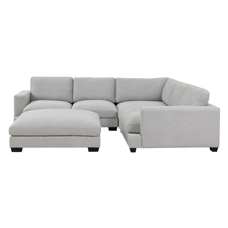 Daria 5 Seater Corner Fabric Lounge with Ottoman - Light Grey