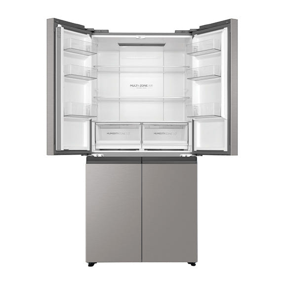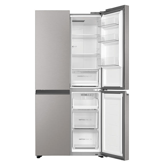 The Haier 463L Quad Door Fridge Freezer in Satina is built for modern homes that value flexibility, freshness and efficient performance. Offering 301 litres of refrigerator storage, a 75-litre freezer, and an 87-litre variable temperature compartment powered by SwitchZone technology, this fridge gives you the ability to adapt your storage on demand. It maintains even cooling across all areas to preserve your food's quality, while Anti-Bacterial Treatment (ABT) technology helps to create a more hygienic environment. With an inverter-controlled compressor, it runs quietly and efficiently, saving on energy without compromising performance. The external LED display allows for easy control at a glance, and the use of R600a refrigerant means it's better for the planet too. With its flat door design and premium Satina finish, this 463L quad door refrigerator blends modern styling with smart, reliable functionality.