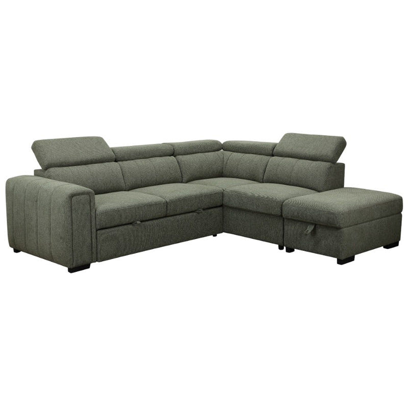 Odelia 4 Seater Corner Fabric Lounge with Pullout Sofa Bed - Green