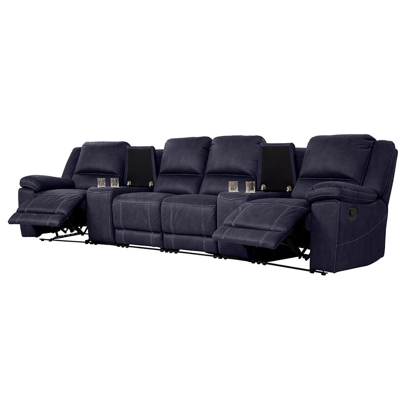 Oregon 4 Seater Fabric Home Theatre Recliner - Navy