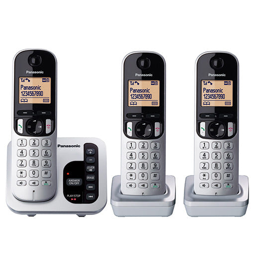 Enhance your communication with the Panasonic Cordless Telephone Speakerphone 3-pack. Enjoy cordless mobility, crystal-clear conversations, and hands-free convenience. With Caller ID and three handsets, it's your reliable solution for seamless connectivity at home or in the office. Stay effortlessly connected with Panasonic.