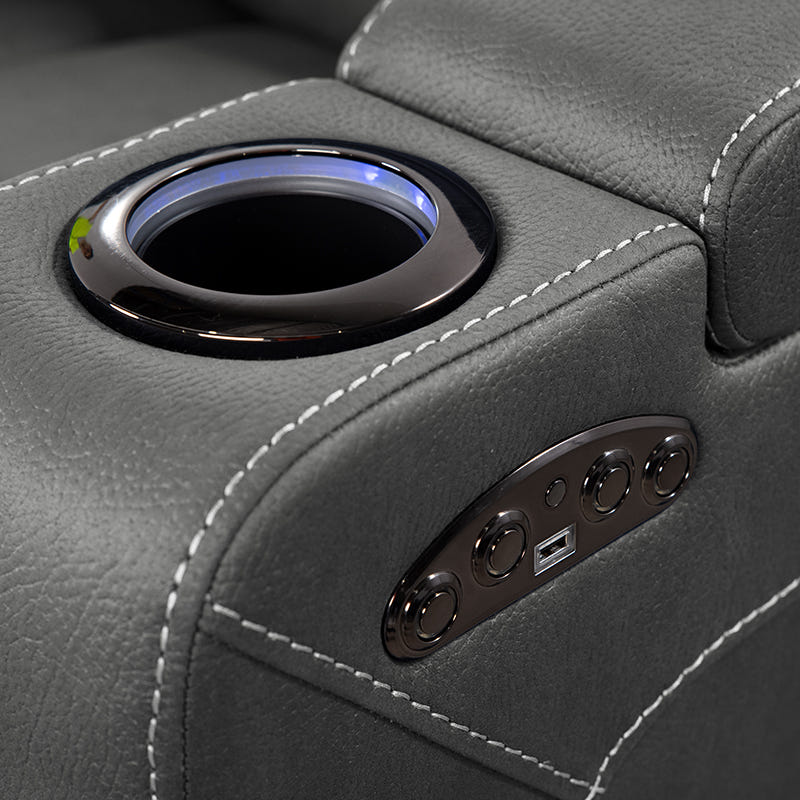 Relax in comfort with the Spielberg 2 Seater Electric Fabric Recliner Sofa in Ash. This luxurious sofa features two electric reclining seats and adjustable headrests for personalised comfort. The center storage console, USB charging ports, and LED cup holders with color-changing strip lighting add a touch of modern convenience. Additionally, the armrest storage offers practical space-saving solutions. The support system combines webbing and zig-zag springs, while the back cushion filling includes fiber and foam for optimal comfort. The cushioning filling with Dacron and pocket springs ensures lasting support. Upholstered in a sophisticated Ash fabric, this sofa measures 1800mm W x 970mm D x 1040mm H and comes with a 5-year structural warranty and a 2-year warranty on fabric and motor.