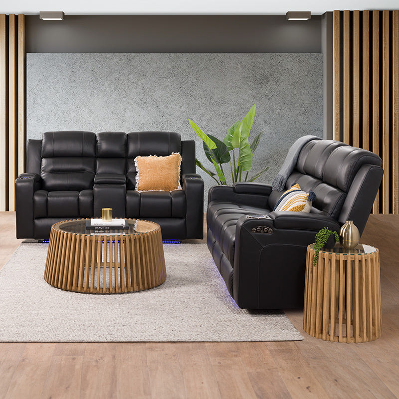 Spielberg 2 Seater Electric Leather Recliner Sofa - Black