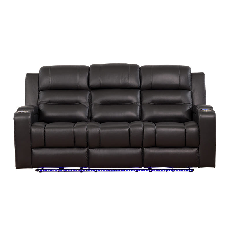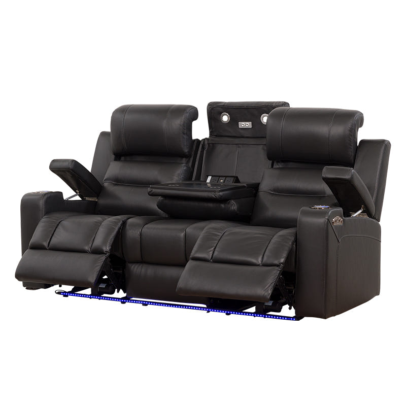 Spielberg 3 Seater Electric Leather Recliner Sofa - Black