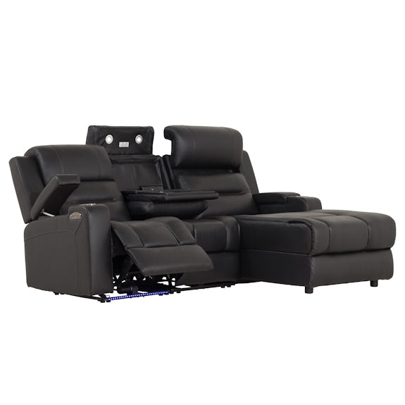 Spielberg 3 Seater Leather Sofa with Electric Recliner and RHF Chaise - Black