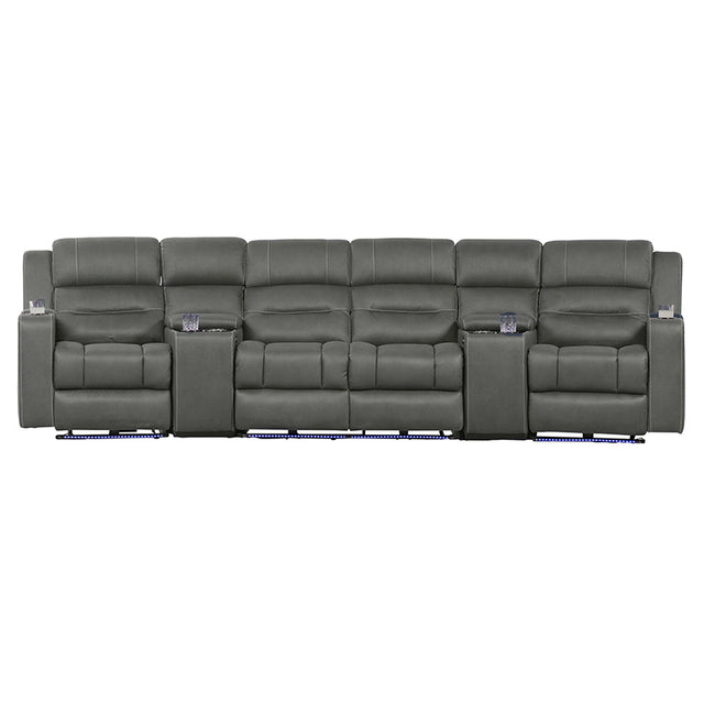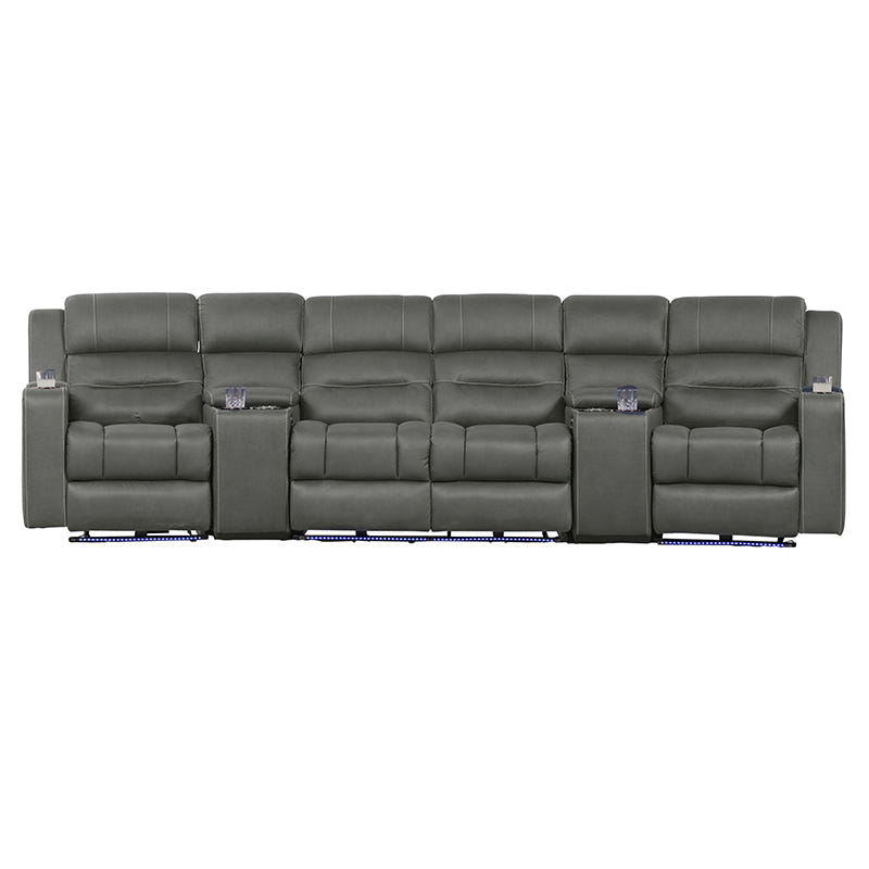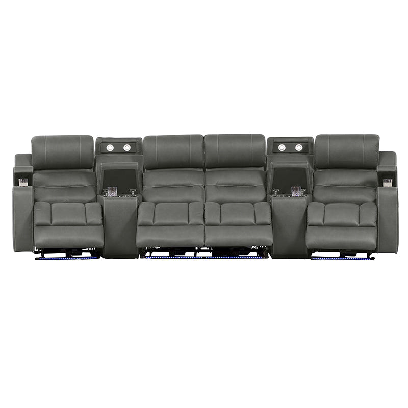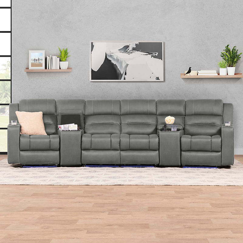 Spielberg 4 Seater Home Theatre Electric Recliner Fabric Lounge - Ash