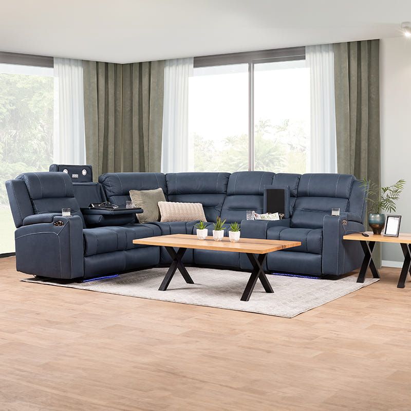 Spielberg 5 Seater Home Theatre Corner Fabric Recliner Lounge - Azure