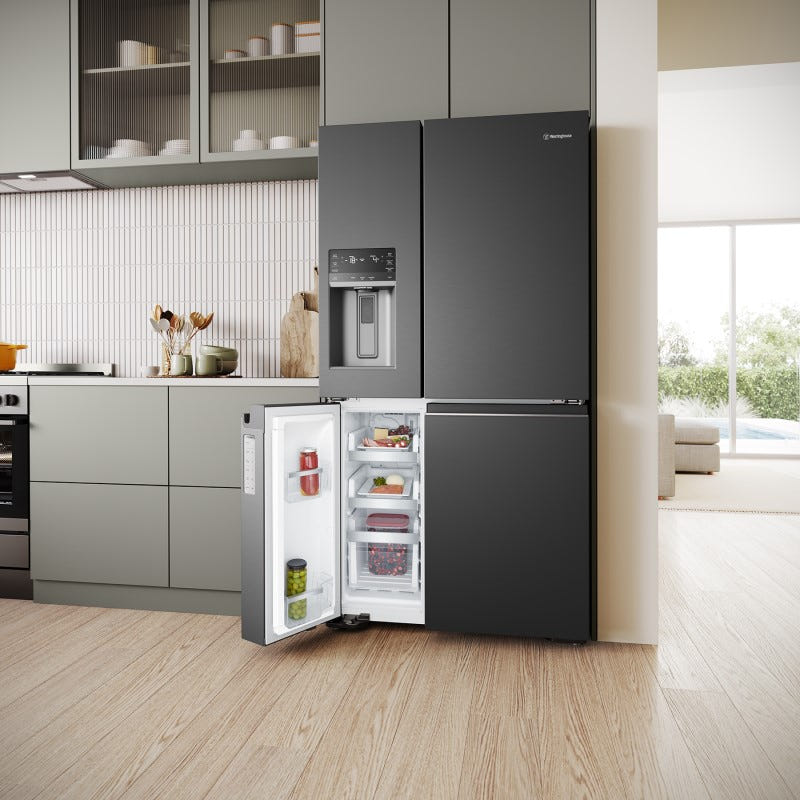Westinghouse 609L Quad Door Fridge Freezer with Ice & Water Dispenser - Matte Black