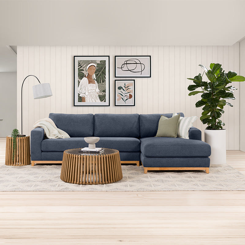 Willow 3 Seater Fabric Sofa with RHF Chaise - Azure